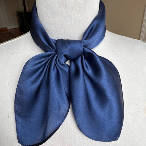 Marineblått silkeskjerf i fin kvalitet. Størrelse 66x66cm