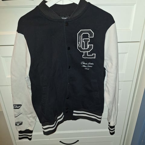 College jakke med hette i flerfarget kamuflasje farge. Godt brukt.