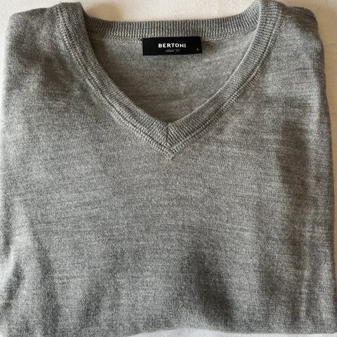 Pent brukt, som ny, BERTONI genser 100% merinoull herre str L. Selges 120kr+ porto.