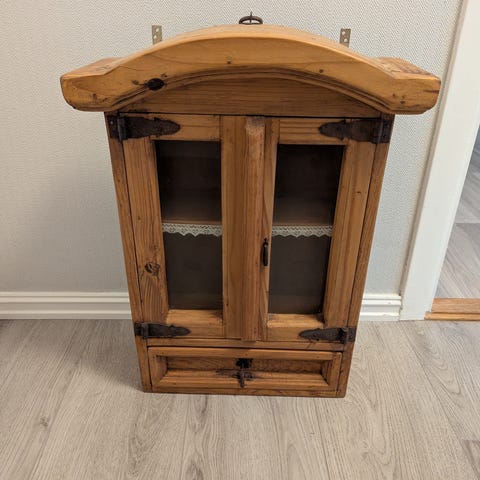 Gammelt skrin / skap med oppheng for vegg i heltre