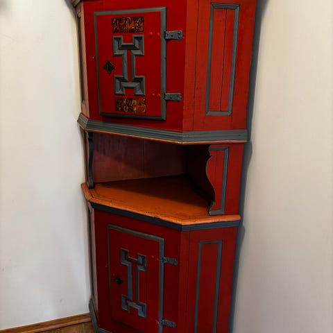 Nydelig gammelt heltre skrin / skap for vegg rikt dekorert