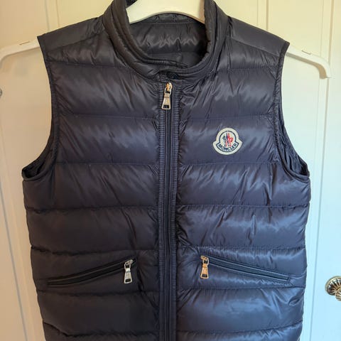 Som ny Moncler vest for baby/barn. Så og si ubrukt uten noen merker eller skader. Medfølger oppbevaring pose og kleshenger.