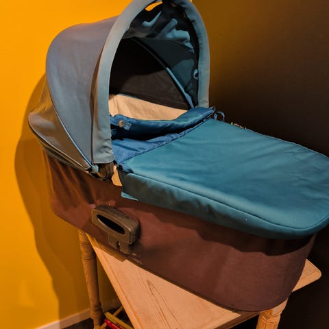 Duovogn gis bort. Har vært godt brukt og begge barna våre har hatt glede av den. Den fungerer, men har falmet i fargen, spesielt forlengelsen på barnehjulet. Ett dekk må settes på plass igjen, siden båndet har løsnet.