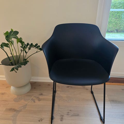 Stolen lite brukt, men har noe slitasje på den ene siden etter dyreklør.