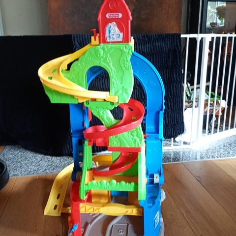Fint brukt Fisher Price bilbane 2 i 1 med fem kule biler.