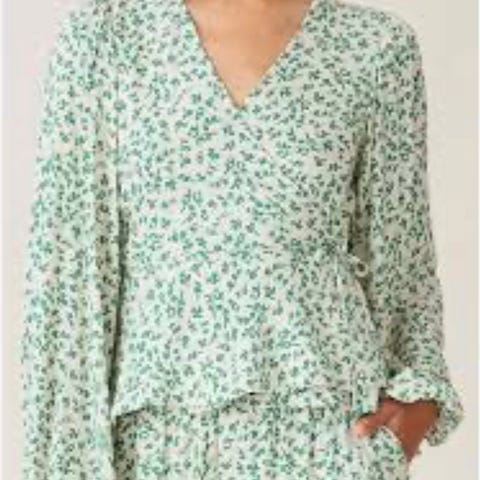 Ganni barra crepe wrap around topp blå str.36, som ny/ubrukt