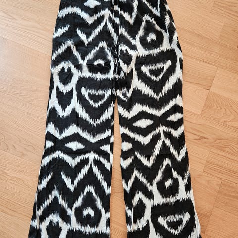 Vid pull-on legg-lang sommerbukse fra Cisco. Synes ikke jeg kledde lengden, så selger den videre. Nydelig kvalitet, farger og mønster. Merket M (40-42). 96% Viscose og 4% Elastan.