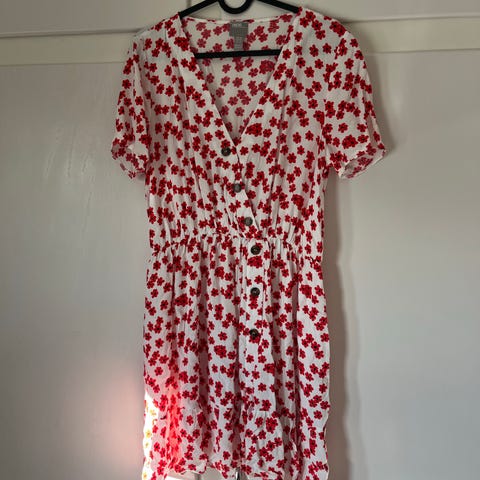 Lys rød med hvite blomster 👗
