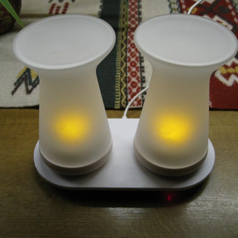 Har eit sett med 3 Philips oppladdbare lys. Størrelsen på desse er 12,5 cm x 5,5 cm ( H x D )