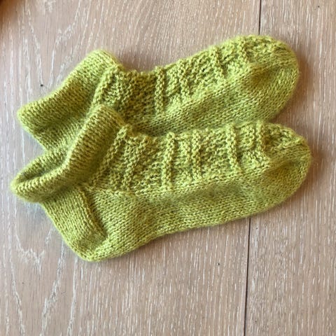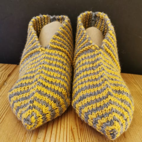 Hyttetøfler - hjemmestrikket