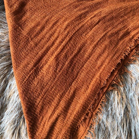 Herlig sjal i enten viskose eller bomull. Myk kvalitet. Beige-toner med innslag av rosa.