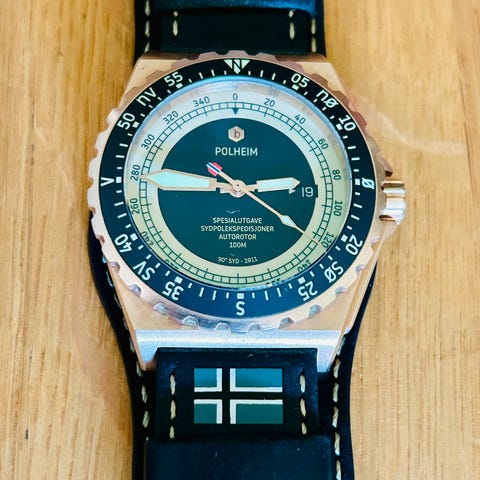 Denne klokken var med i sleden til Dypdalsbakk, og er dermed en av de som faktisk nådde selve Sydpolens punkt.