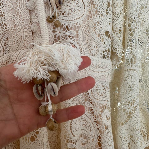 Svart kjole /heklet/strikket/sateng el lignende, m/blomster mønster og perler selges for 899,- ✨✨✨✨🌿🖤🌿✨✨✨✨