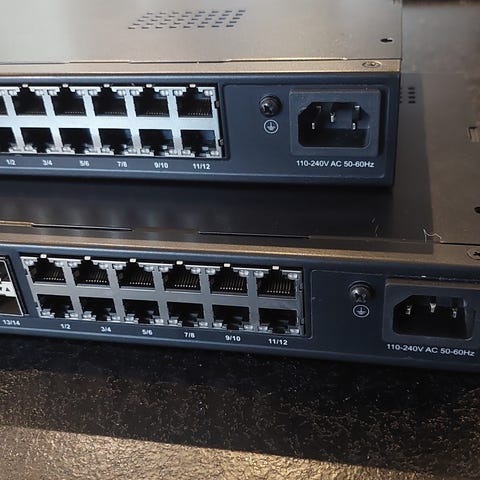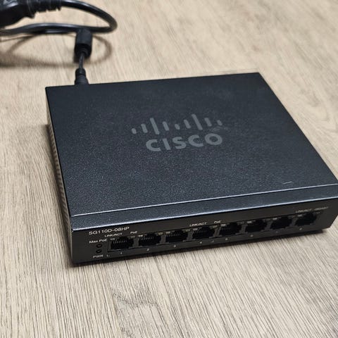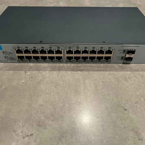 Dette er en HP 1810G-8 Smart Switch, modell J9449A – en kompakt gigabit-nettverksbryter med 8 porter og webbasert administrasjon, perfekt for hjemmekontor, små bedrifter eller nettverksutvidelser. Støtter VLAN, QoS, trunking og andre grunnleggende Layer 2-funksjoner via en enkel nettlesergrensesnitt.