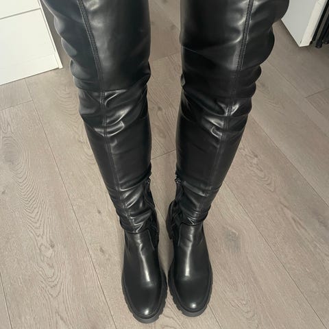 Flotte svarte semskede lær boots med mønster, selges for 400,-. Støvlettene er ikke brukt, de er kun prøvd på innendørs. Lappen er fremdeles på.