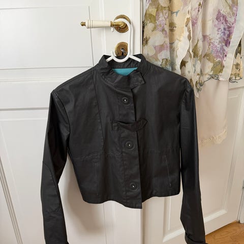 Klassisk sort crop blazer, fin over kjole. Blazeren er pent brukt og er størrelse M. Materiale: 80% viskose, 15% polyamid, 5% elastan. Jeg sender stort sett alltid første virkedag etter mottatt penger for frakt :)