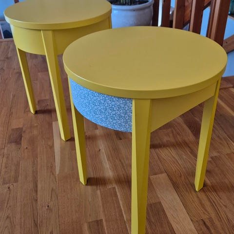 Pent og praktisk skatoll/arbeids-bord m/ben og topp-skjenk, begge sort-lakkert m/messing-håndtak. Nøkkel følger med. Pene, stødige og matchende til hverandre. GOD PLASS!