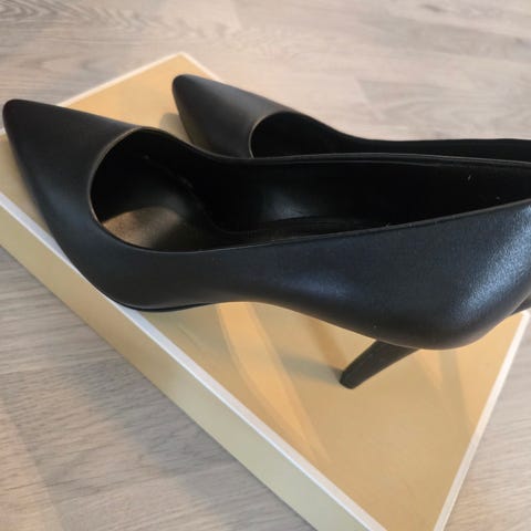 Meget pent og kanskje vært i bruk 2 ganger MK pumps sort skinn.