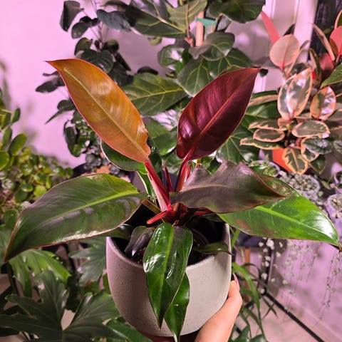 Stor og flott Philodendron Ring of Fire. Kommer med blomster og nye blader nå.