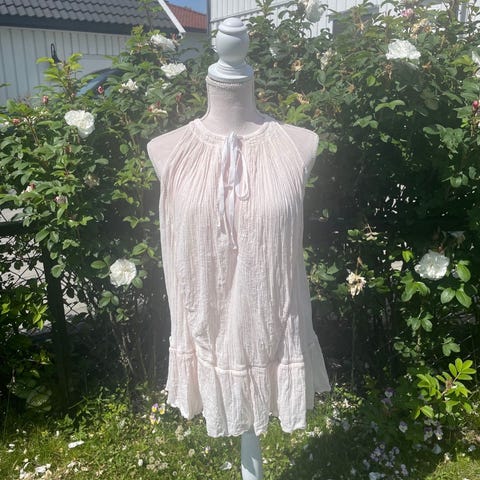 Lekker hvit lintopp uten ermer. Vakre detaljer!