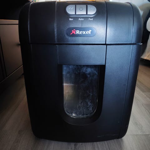 Denne maskinen er ideell for bruk på kontoret på grunn av den romslige 60-liters beholderen som trekkes ut for å tømmes. Du trenger ikke å mate papir manuelt, eller fjerne stifter og binders først, denne makuleringsmaskinen vil gjøre alt arbeidet for deg.