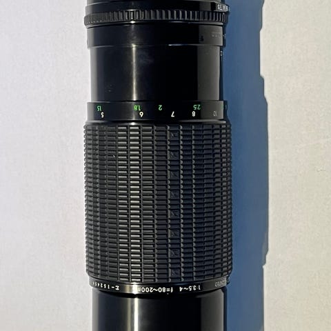 Flott og velholdt Sigma 400mm F5.6 objektiv for Minolta 35mm speilrefkels (SR/MC/MD). Utover en liten flekk i belegget på frontelementet og noe spredte støvkorn er det ikke mye å utsette på dette.