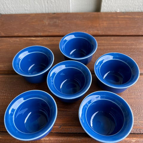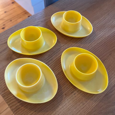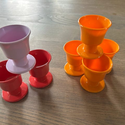 Selger samlet 4 stykker eggeglass i dekoren Telemark. Stavangerflint eller Egersund fayanse ??
