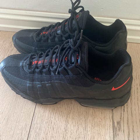 Selger et par splitter nye Nike Air Max Plus i rød og svart fargekombinasjon. Skoene er helt ubrukte, kun tatt ut av esken for bilder (se bilde).
