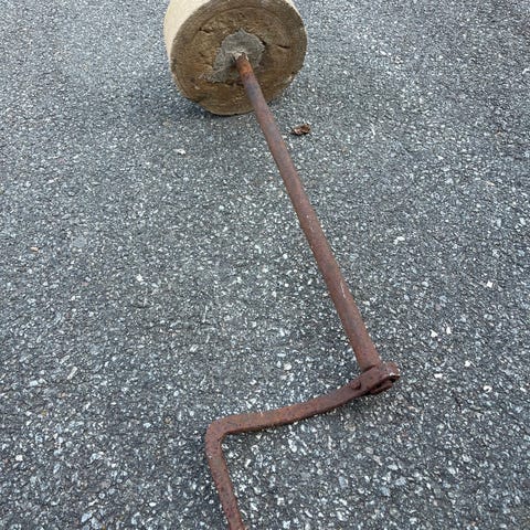 Håndsveiv, mindre type slipestein med 30 cm i diameter. Bredden på steinen er 6. Cm. Kan møtes Kongsvinger/Finnskog/Østfold, eller om du henter den her ved Skarnes.