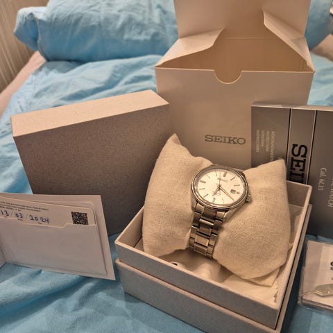 Klokken ble kjøpt i 2022. Var brukt kanskje 3 ganger. Ingen riper eller slitasje.