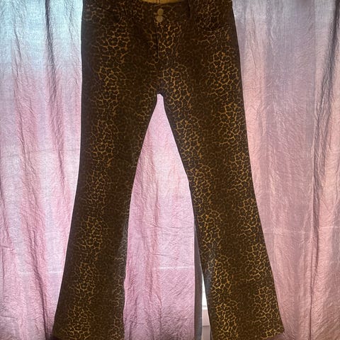 Kul mønstret bukse med metallisk farge. High waist modell med straight leg. Aldri vært brukt, men lapp er tatt av da jeg trodde jeg skulle få brukt den. De er merket 36 i størrelsen, men de er små i størrelsen, og er nok nærmere 34. Materiale: 98%bomull, 2% elastan. Merke: Victoria. Kan sendes eller hentes på Lysaker.