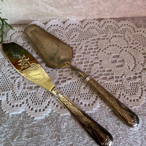 Sølvbelagt Kakesett med Kniv og Spade - Elegant og Tidløst