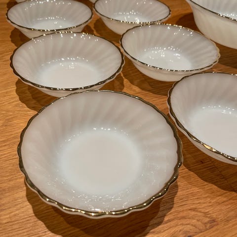 Den siste er Umerket og har litt annen fasong. Noe mer slitasje på gullkanten, men fortsatt fin.