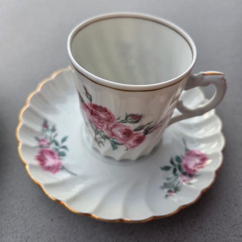 Hentes etter avtale på Kalbakken. Har også asjetter / fat i ulike størrelser og tekopper med skål i samme serie - ta kontakt om du mangler deler eller se mine andre annonser