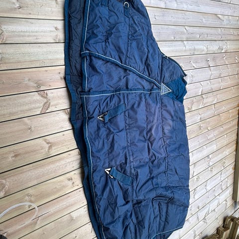 Nyvasket Stalldekken med halvhals str 145, lite hull fremme i det tynneste stoffet på siden. 150-200g SOLGT