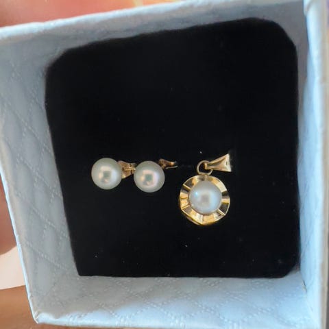 Smykkesett 585gull perle diamant