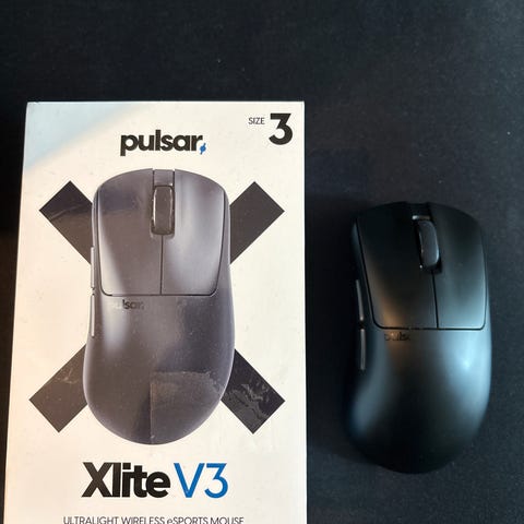 Selger Pulsar X2V3. Brukt i ca. 2 uker som del av testing for å finne riktig form og følelse. God allround-mus med lett vekt og god sensor.