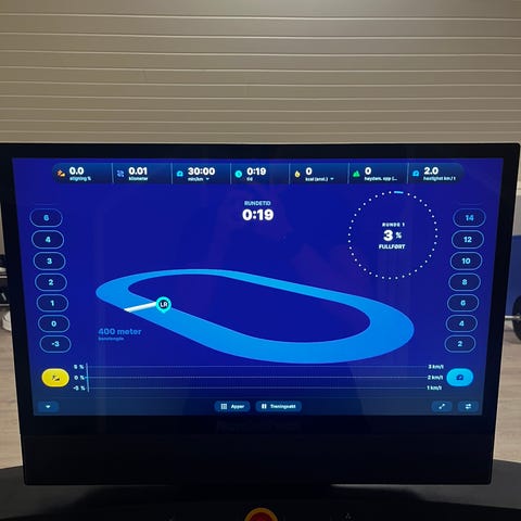 • Stort display – Enkel oversikt over hastighet, stigning, kalorier og tid