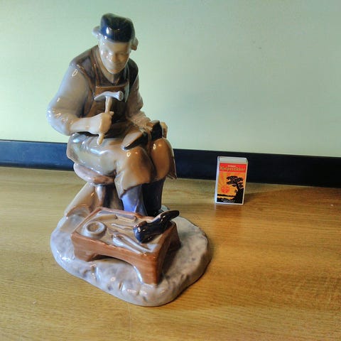 Samleobjekt, nydelig porselens figur av skomaker i arbeid.. Figuren er i perfekt stand, gode farger ingen nag eller krakelering selger figuren for kr 2000 sender gjerne og figuren vil bli pakket godt