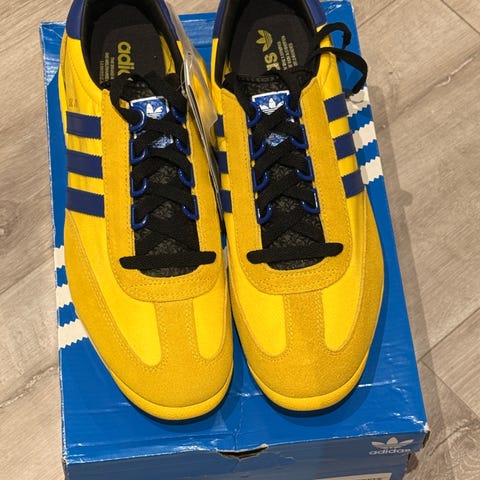 Selger et par helt nye Adidas K74 “Kick” sneakers i størrelse 38 – en eksklusiv og nå vanskelig tilgjengelig modell fra 2024.
