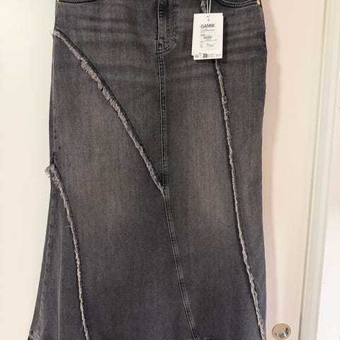 Selger et helt nytt (med lapp) plissert denim skjørt fra Ganni, grått, str 40, da det ikke passer meg. Ny pris var 2595kr.