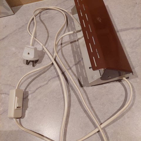 Lampen er i god stand med litt naturlig patina, noe som gir den ekte vintage-preg (se bilder). Kabel med bryter er intakt og fungerer som den skal.