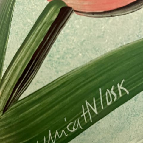 Koselig håndmalt glass til å ha telys eller lite kubbelys i. Håndmalt av Anne S. Riise