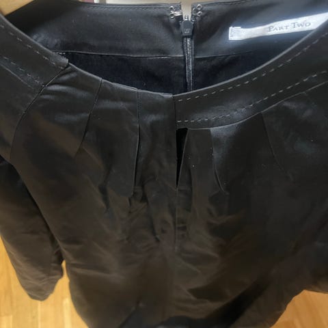 Kun brukt 2 ganger. Føles lett på kroppen, lengen rekker akkurat under kneet. Dyp utringning v foran og bak.