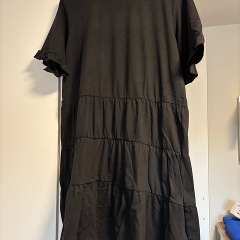 Bak har den usynlig glidelås og en kjempefin splitt. Kjolen har noen få løse tråder, men synes ikke når man har den på. På bildene ble den veldig rød, men fargen er som bilde nr.2.