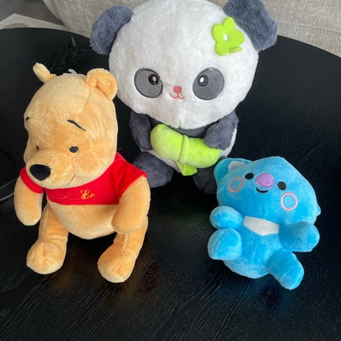 Panda bamser, etter en panda gal datter har hun vokst fra panda tema og er stitch fan, derfor selges pandaene med tungt hjerte. Bamsene er nesten nye, de er lite brukt. Selges samlet for 800kr