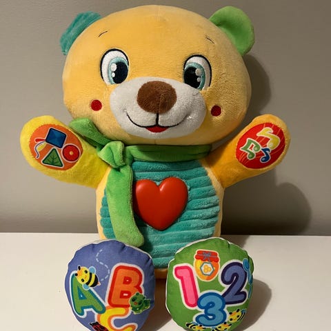 Trykk på de fem berøringspunktene og bamsen vil snakke og introdusere barnet for dens første bokstaver, tall, former og farger. Hjertet på bamsens mage lyser opp når den trykkes inn og bamsen snakker, synger og sier morsomme rim.