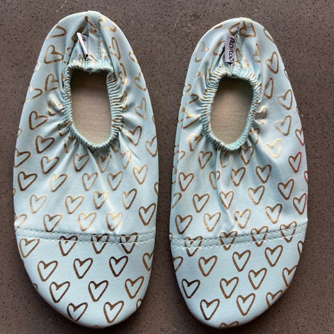 Pent brukte badesokker fra Slipstop str 32-34 (tror jeg, det står ikke størrelse på). Se mål på bildet, ca 20 cm lang såle.