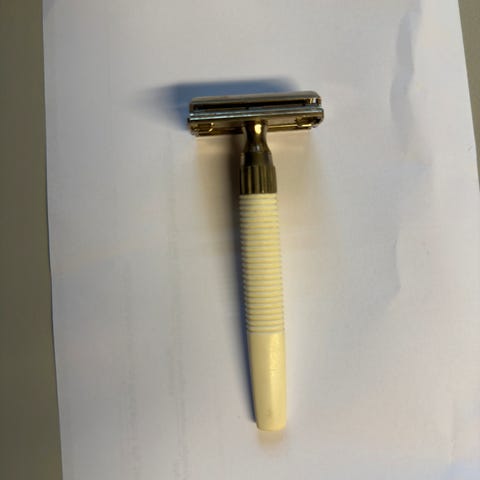 Klassisk barberhøvel (straight razor) til salgs. Høvelen er merket “Bengall Cast Steel” og har tradisjonelt design med sammenleggbart skaft. Et solid og tidstypisk barberverktøy som passer både for samlere og for deg som driver med klassisk våtbarbering.