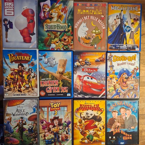 Selger en samling med 6 stk DVD-er til barn for 60,- kr.